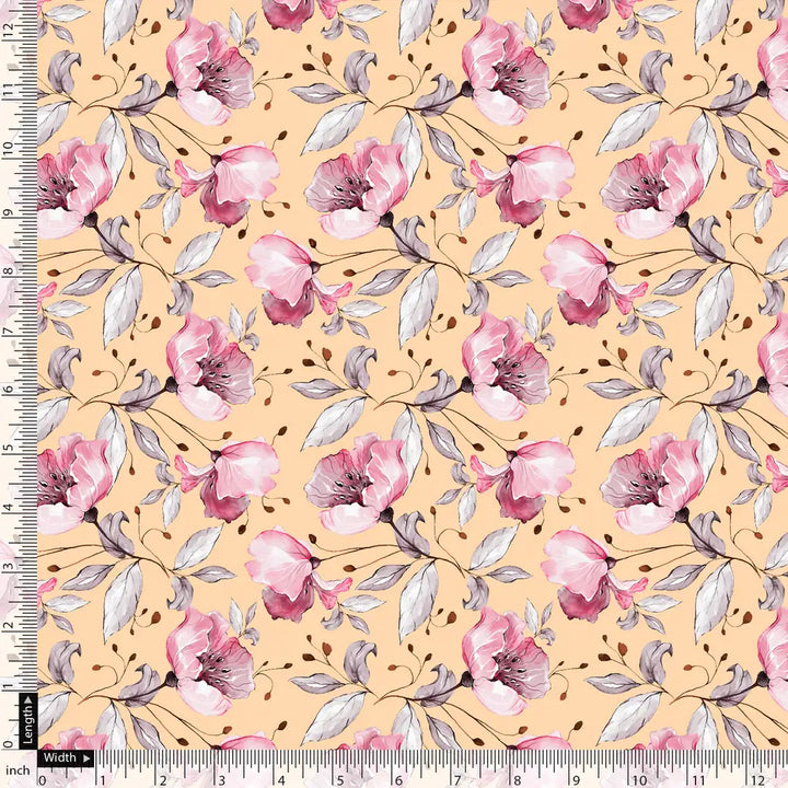 Morden Paint Of Leaves With Flower Digital Printed Fabric