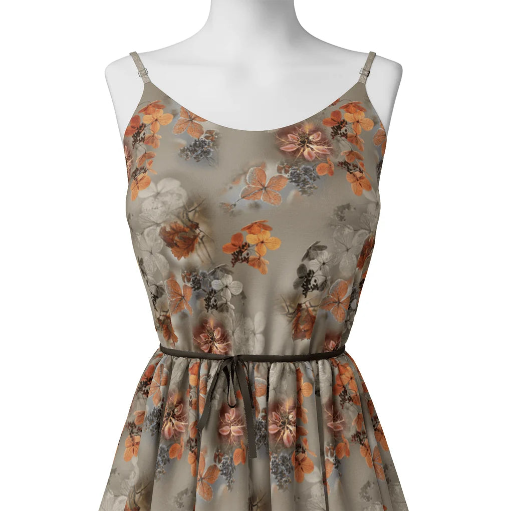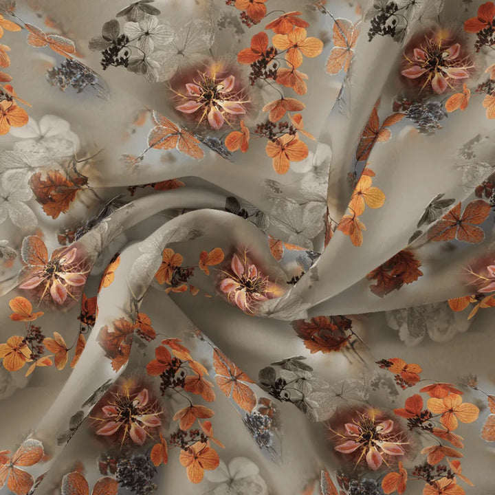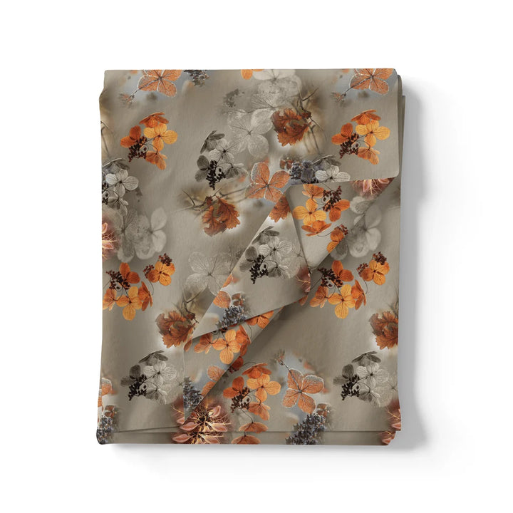 Morden Periwinkle Floral Flower With Gray Leaves Digital Printed Fabric