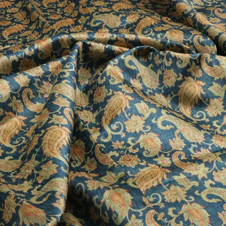Multi color Paisley Over Blue Base Digital Printed Fabric