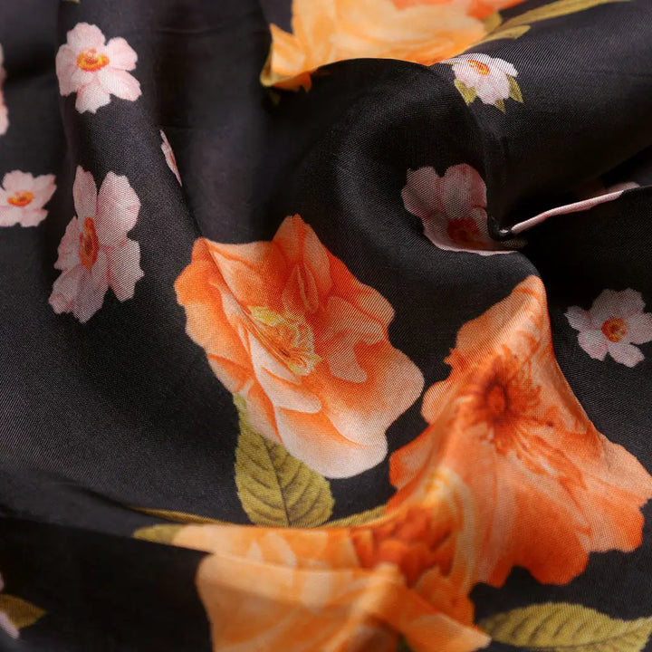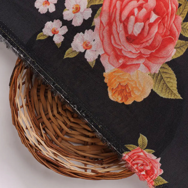 Introducing FAB VOGUE Studio’s Digital Printed Fabric! This luxurious fabric is made of Viscose and Upada Silk, giving it a unique and sophisticated look. The fabric boasts an exquisite floral pattern in a beautiful black color. Perfect for any special occasion, this fabric is sure to make a statement. Its lightweight and soft feel makes it comfortable to wear and easy to care for.