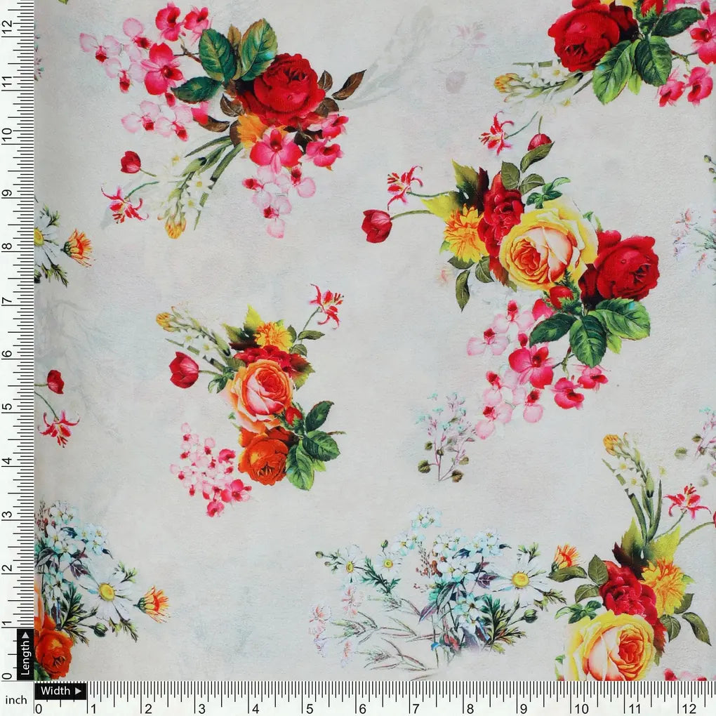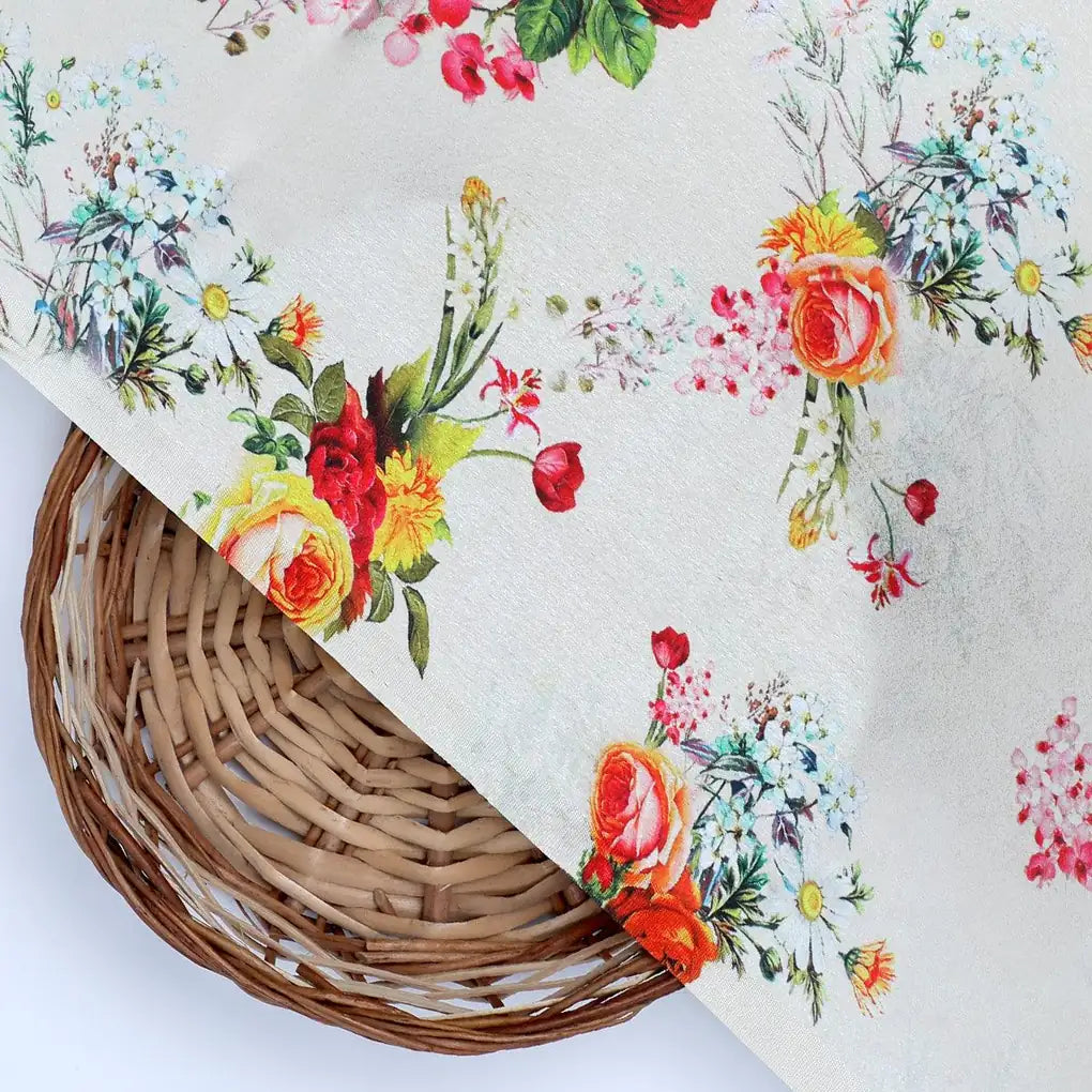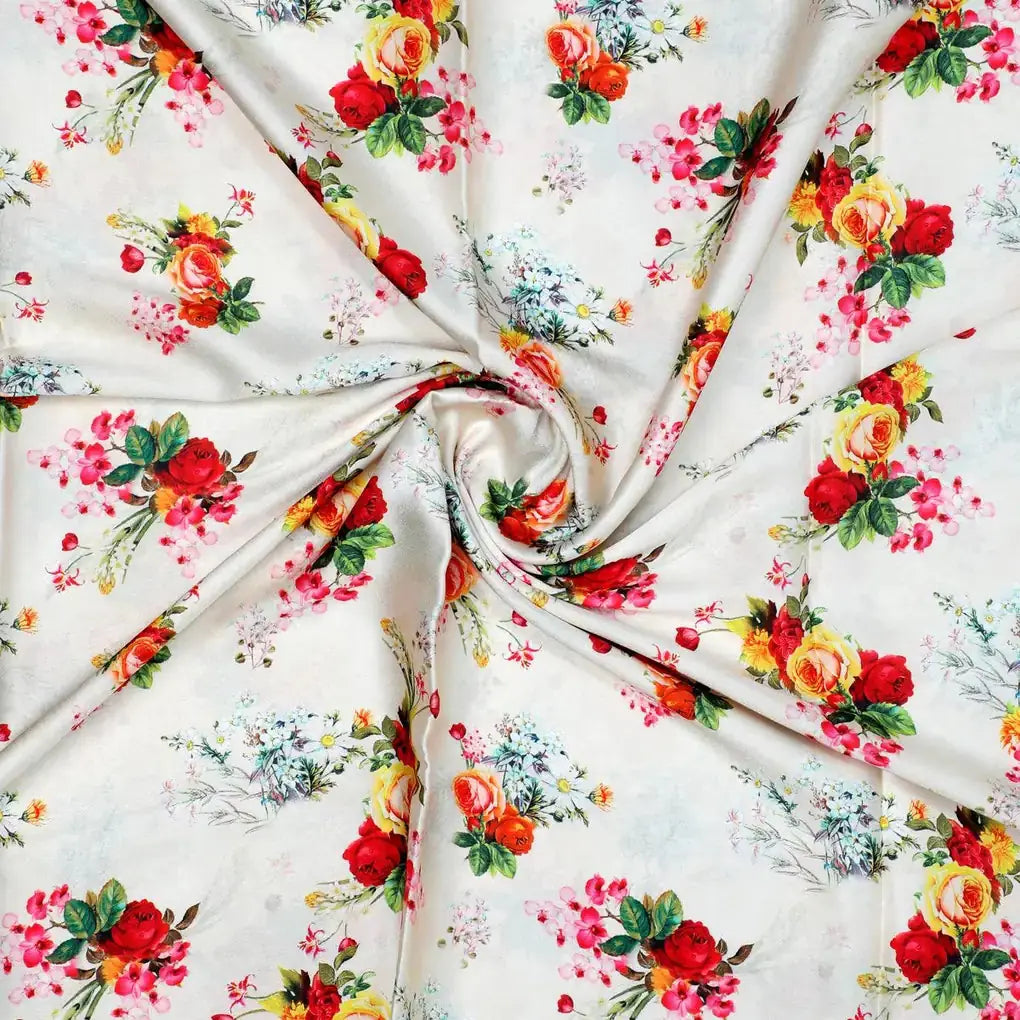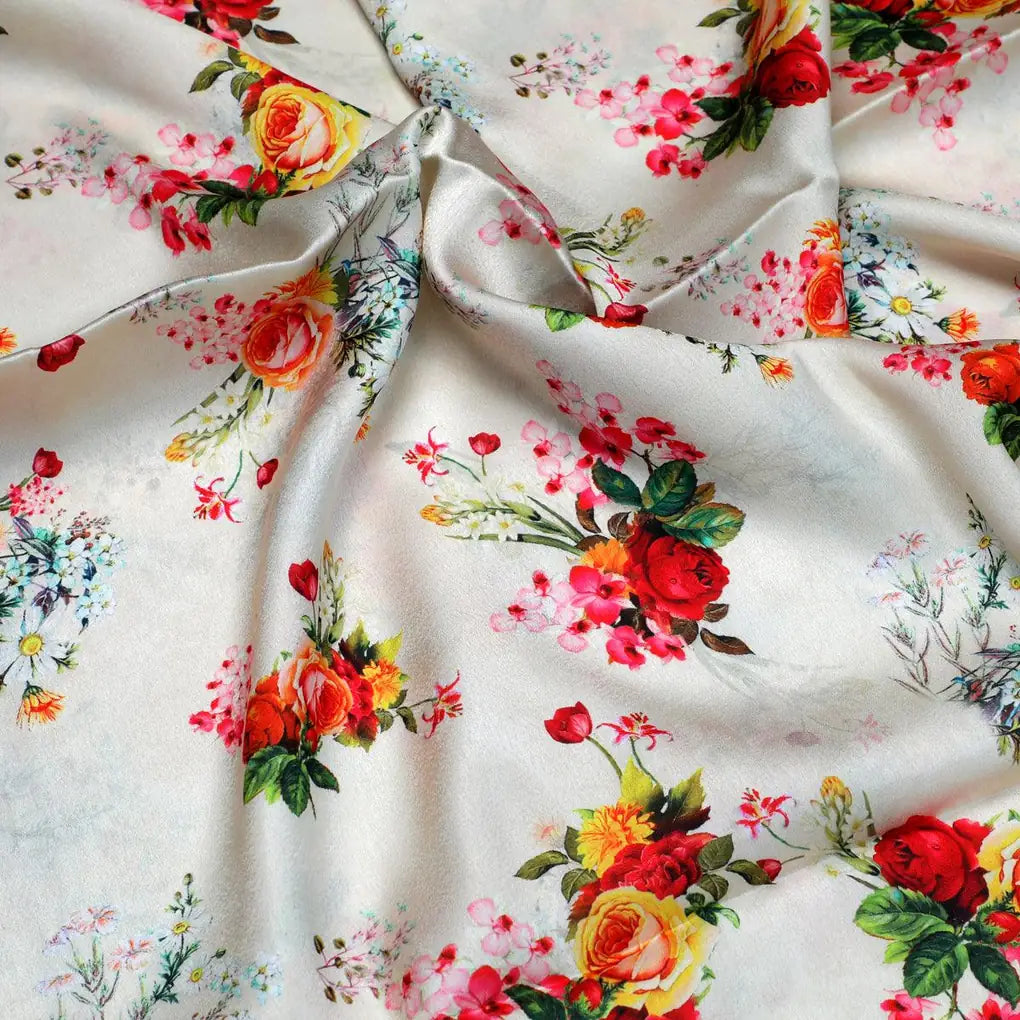 Multicolour Red And Yellow Roses Digital Printed Fabric - Japan Satin