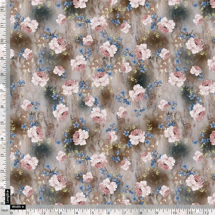 Oil Painted Cool Tiny Magnolia Digital Printed Fabric