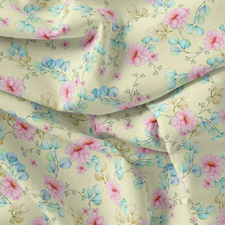 Peony Pink Flower Seamless Pattern Digital Printed Fabric - Cotton
