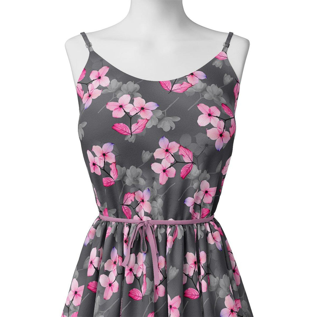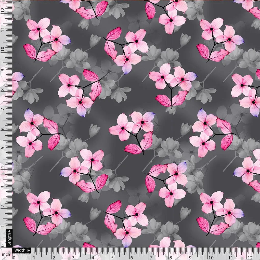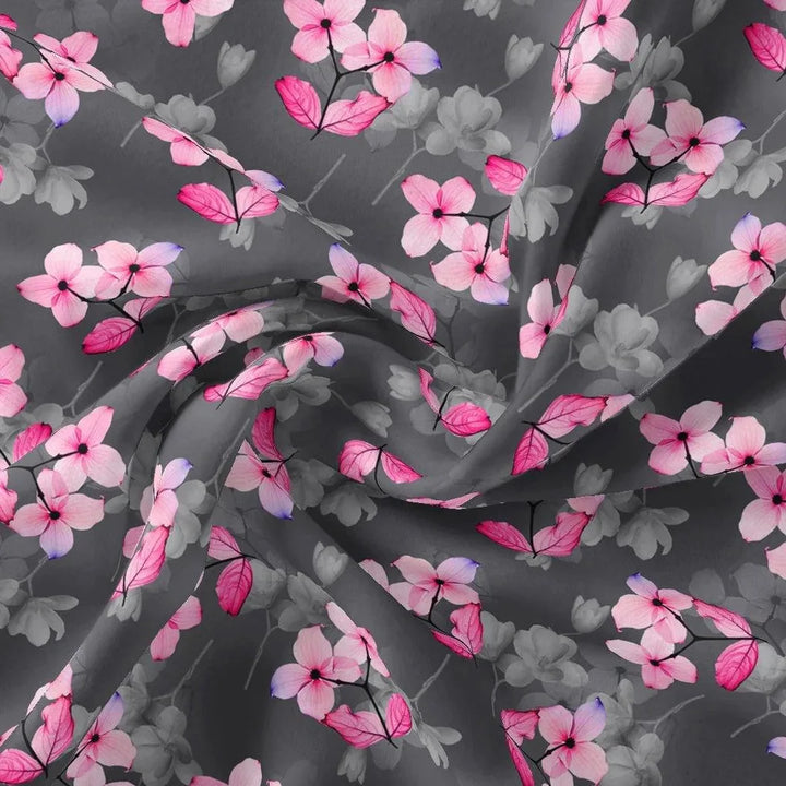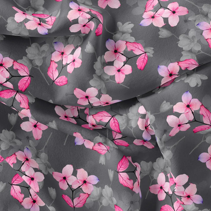 Pink Orchid Flower With Grey Background Digital Printed Fabric - Cotton