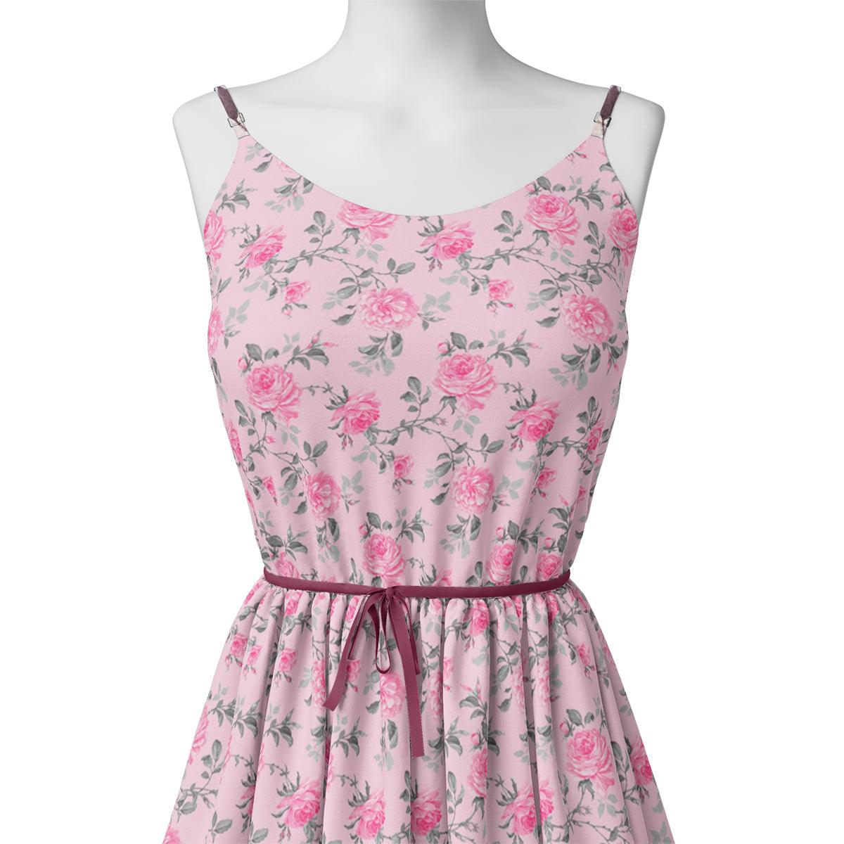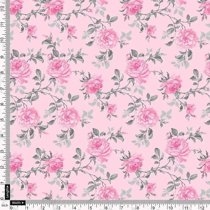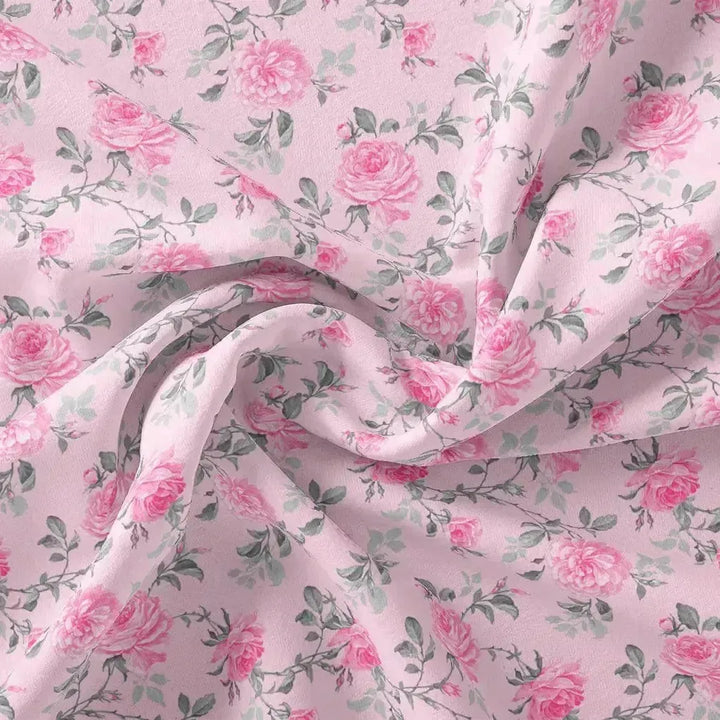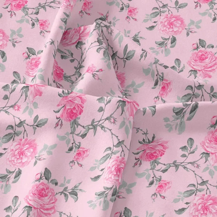 Pink Rose Allover Digital Printed Fabric - Tusser Silk