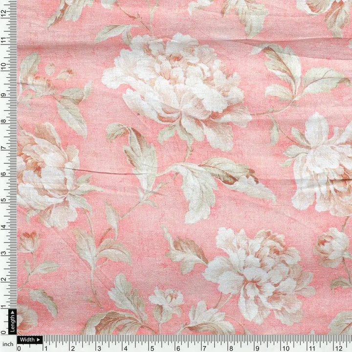 Pure Cotton Digital Printed Fabric - Peach Color & Floral Design