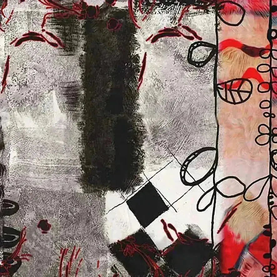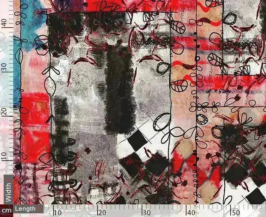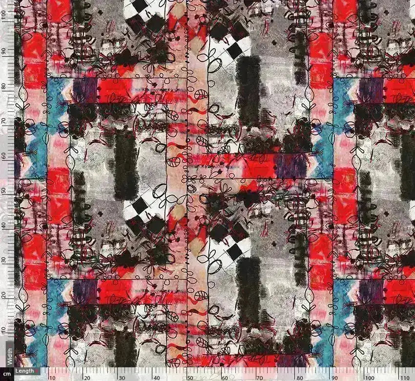 Red And Grey Square Block Repeat Digital Printed Fabric