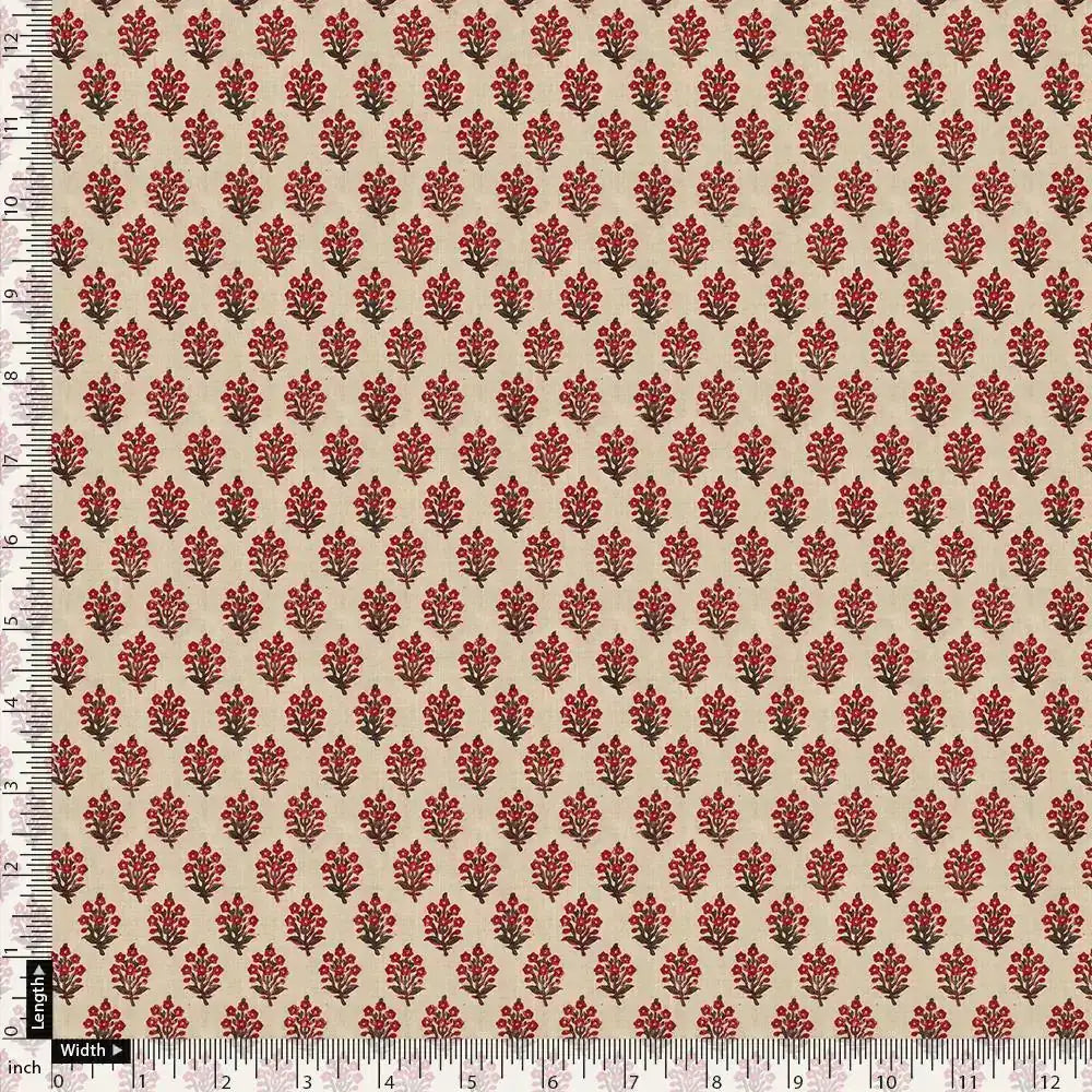 Red Flower Motif Block Digital Printed Fabric - Upada Silk