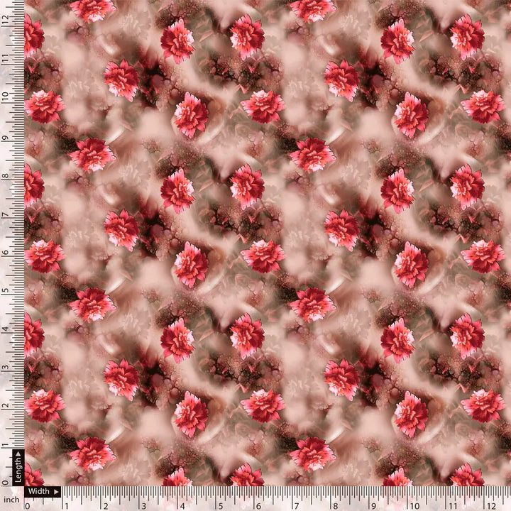 Red Velvet Roses With Paint Background Digital Printed Fabric