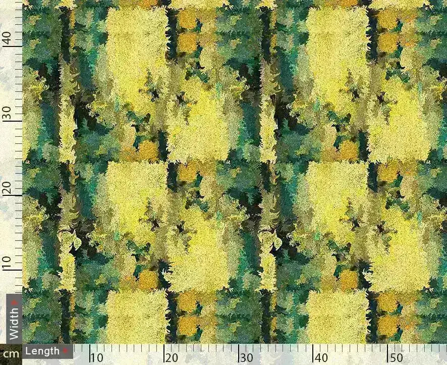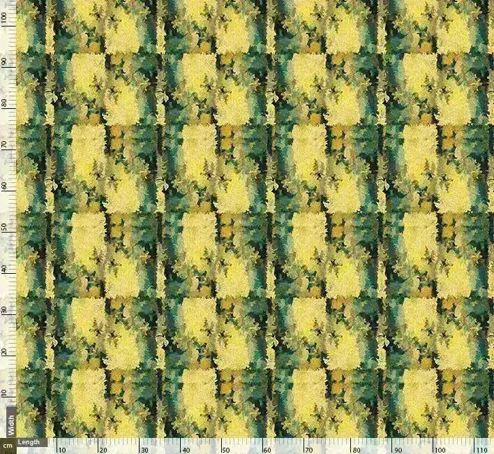 Rustic Green And Yellow Block Repeat Digital Printed Fabric