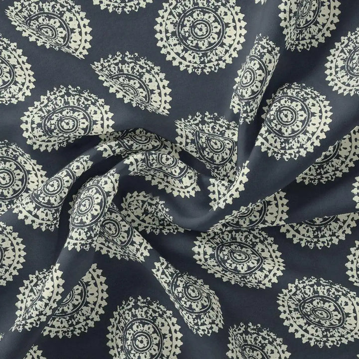 Seamless Rounded Suzani Art Digital Printed Fabric - Pure Chinon
