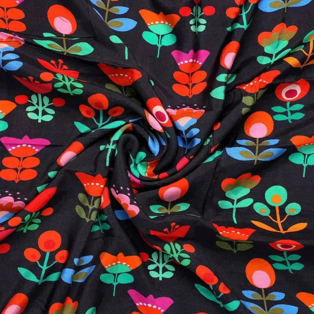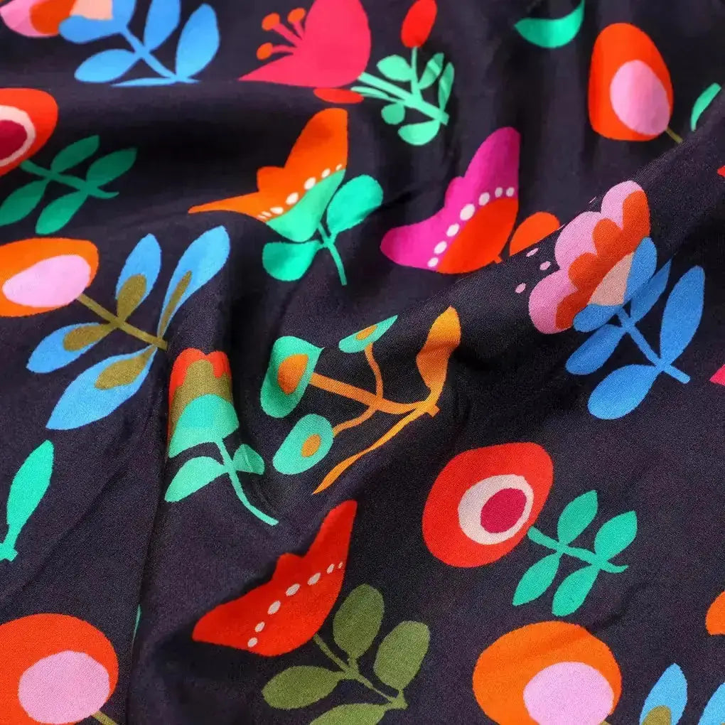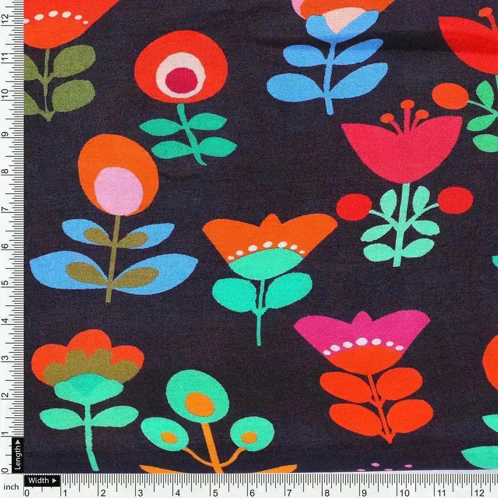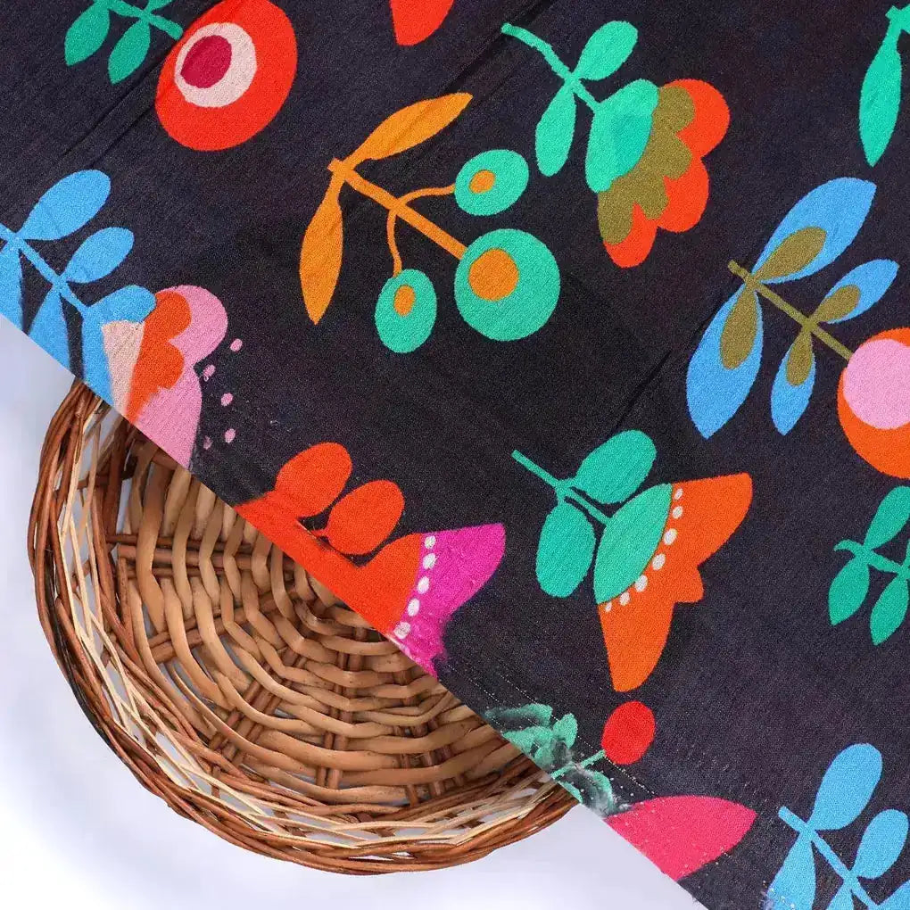 Sketchy Flowers Pattern Digital Printed Fabric - Pure Muslin