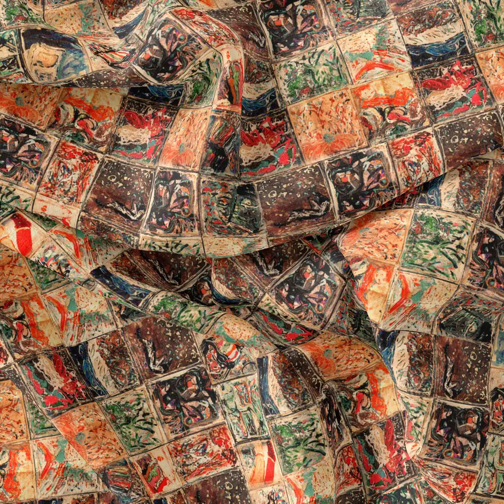 Square Hand paint Blocks Multicolour Digital Printed Fabric - Pure Muslin