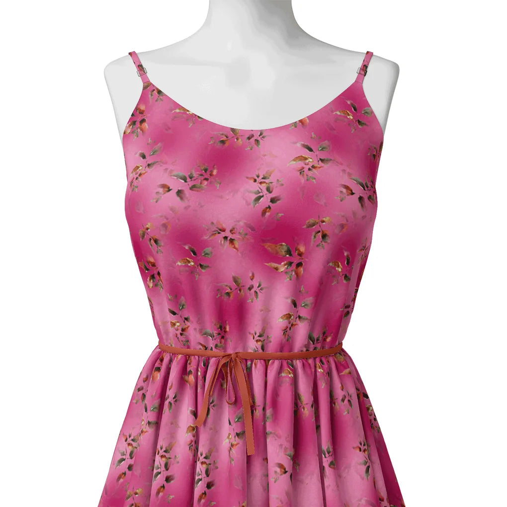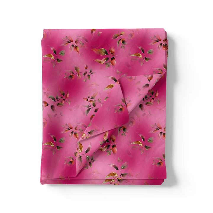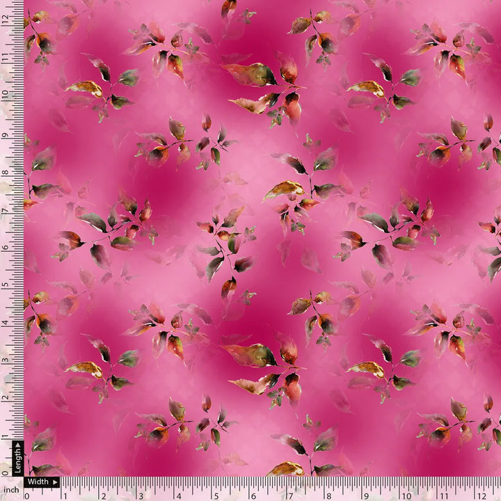 Tiny Silver Leaves With Pink Background Digital Printed Fabric