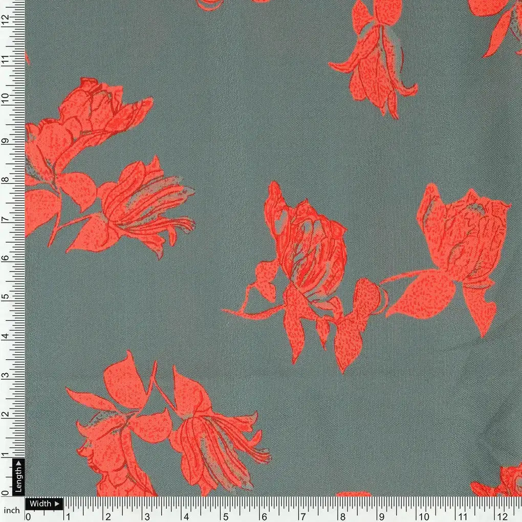 Tulips Roses With Orange Colour Digital Printed Fabric - Rayon