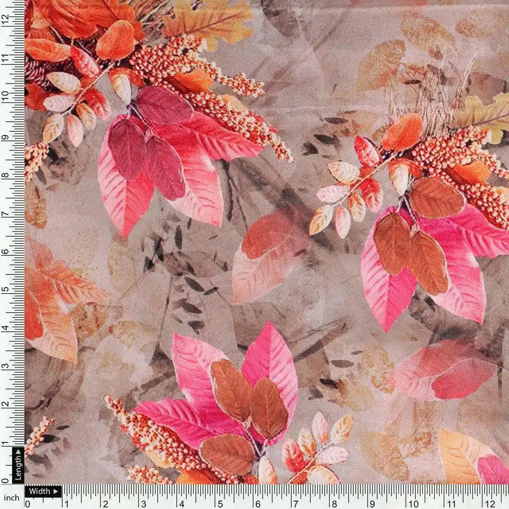 Violet Leaves Bunch Digital Printed Fabric - Crepe