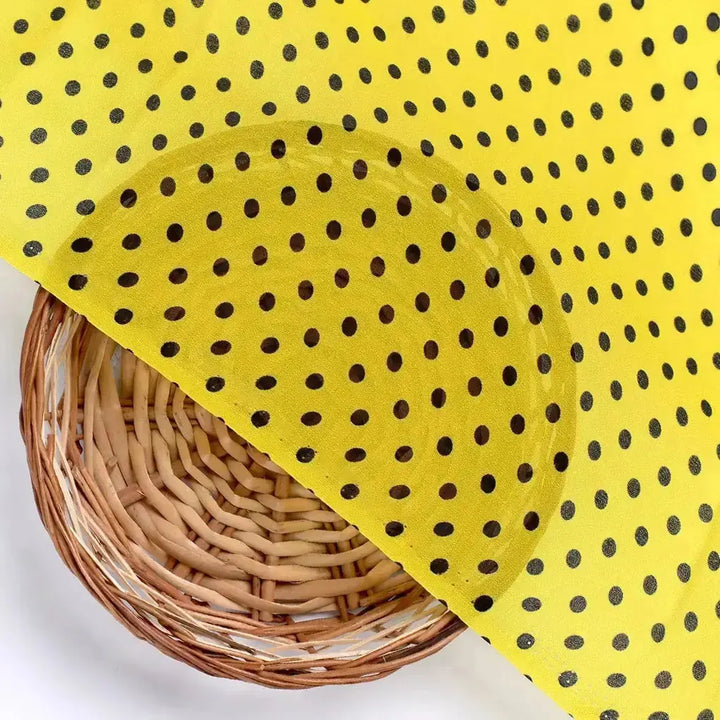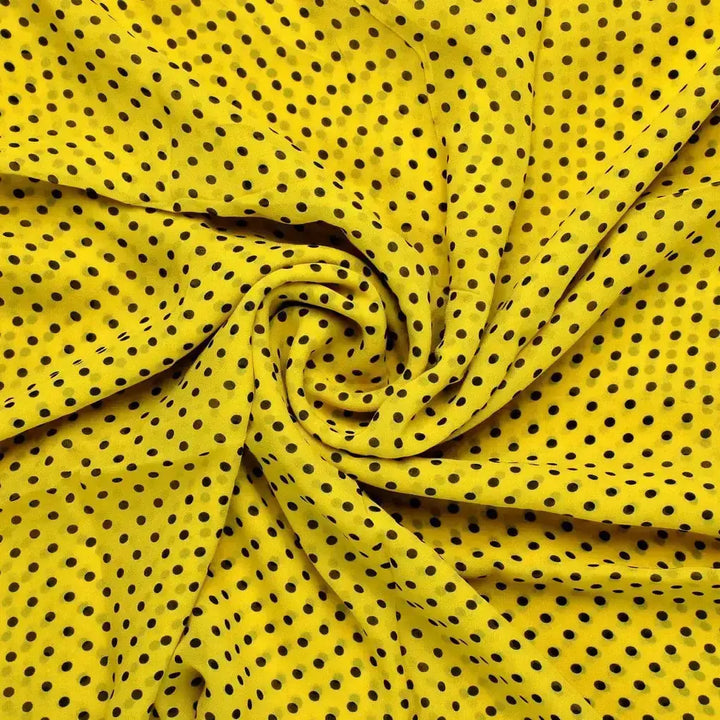 Yellow Polka Dot Digital Printed Fabric - Pure Georgette