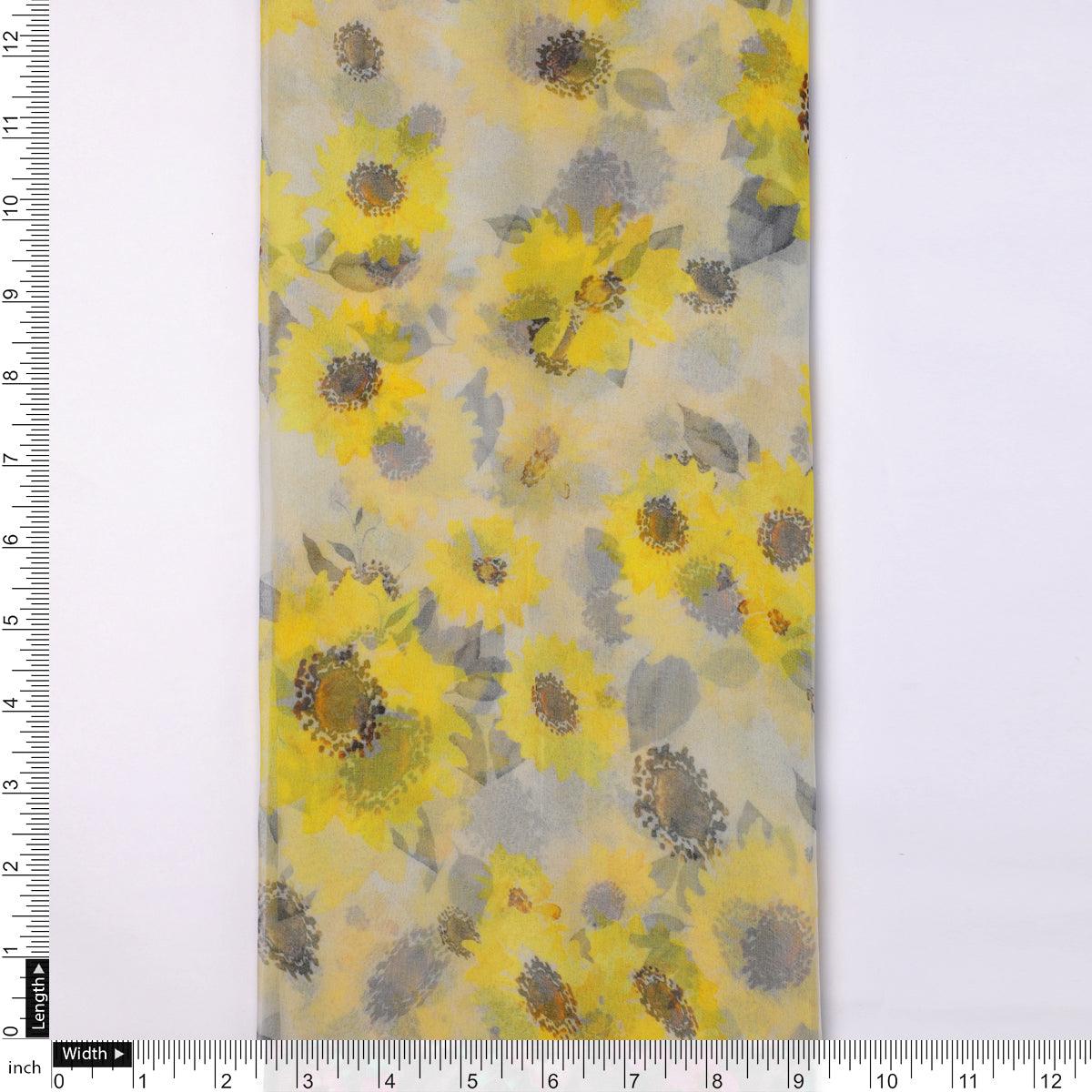 Morden Classic Yellow Sunflower Digital Printed Fabric - Pure Chiffon