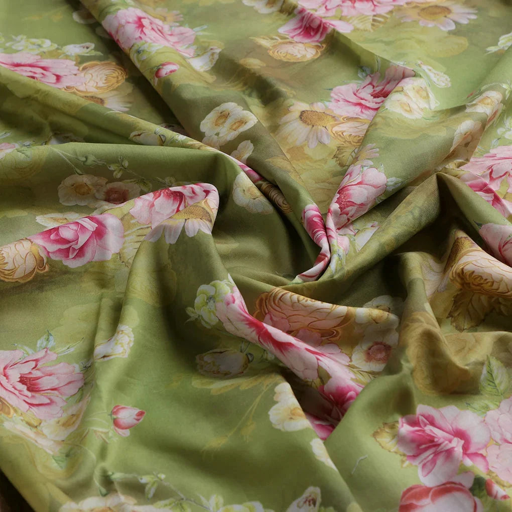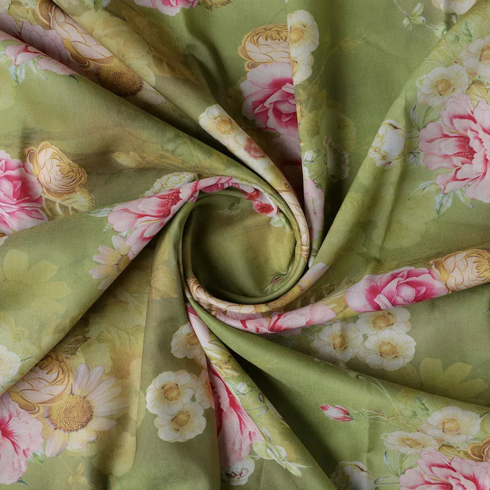 ₹ 340.40 per MeterGreen Floral Printed Linen Fabric