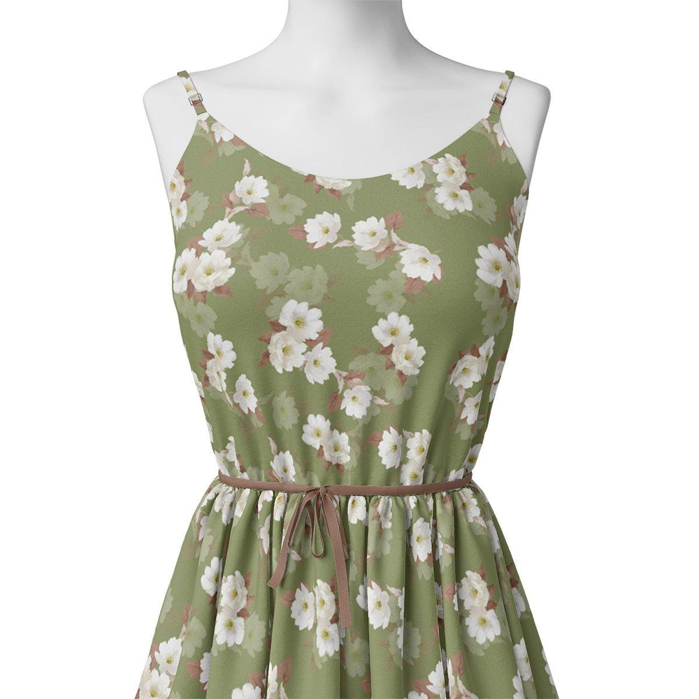 Beautiful Brown Floral Branch Digital Printed Fabric - Japan Satin