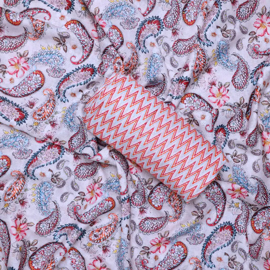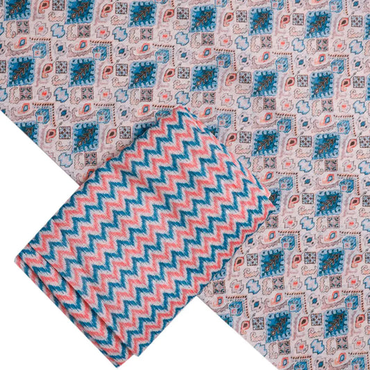 Classy Multicolor Damask Zigzag Pure Cotton Digital Printed Fabric