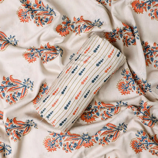 SaleCream Mul Cotton Printed Unstitched Fabric Set (5 Meter Set)
