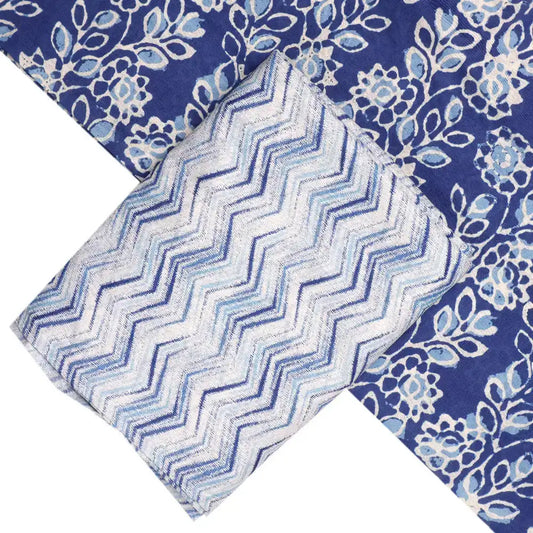 Blue Mul Cotton Printed Unstitched Fabric Set (5 Meter Set)
