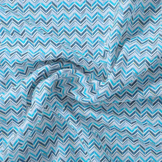 Endless Zigzag Pattern Digital Printed Fabric - Kora Silk