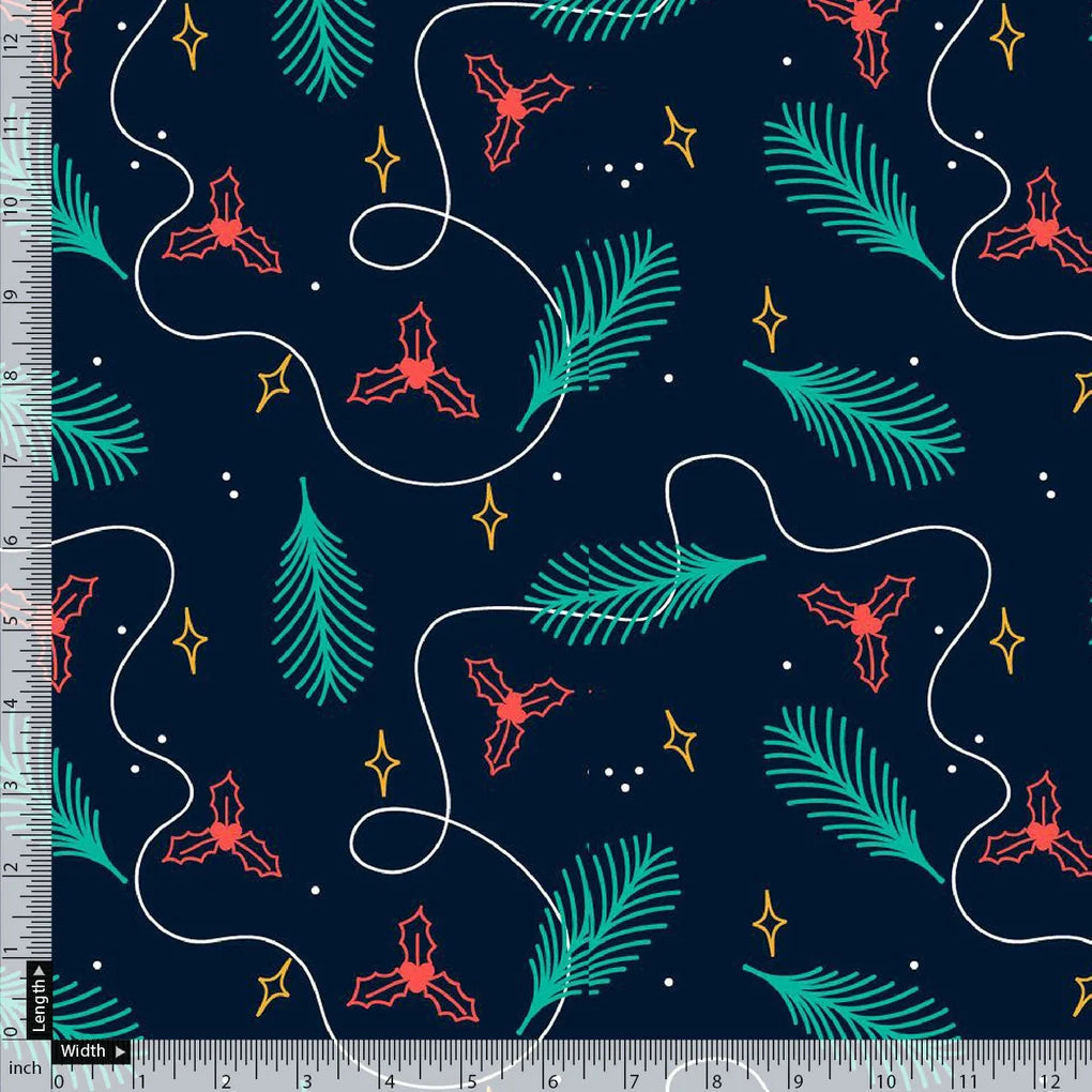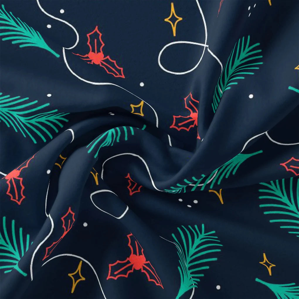 Classy Blue Christmas Printed Japan Satin Digital Fabric