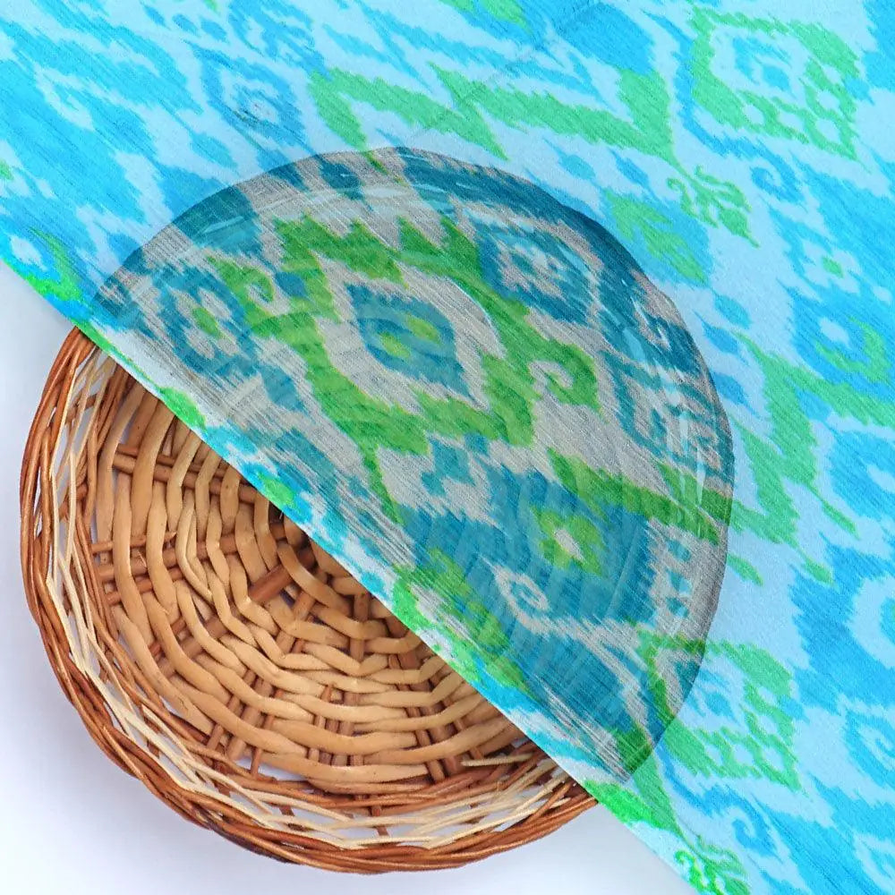 Discover the Morden Ikat Blurry Skyblue Pure Chiffon Western Wear Printed Fabric from FAB VOGUE Studio. This fabric is made from 100% Bemberg quality pure chiffon and is available in a beautiful sky blue color. The fabric features a unique ikat pattern that is perfect for making trendy western wear. Shop this fabric now and create your own stylish look.