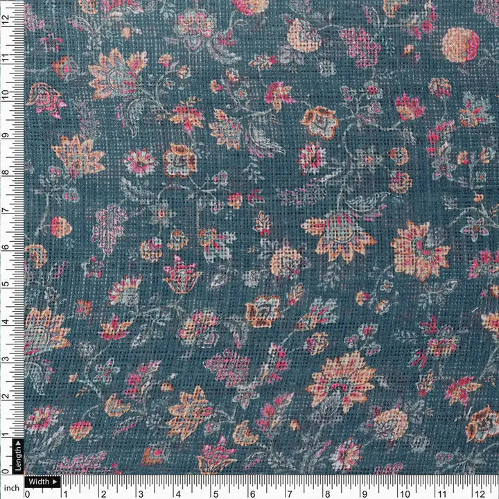 Introducing our exquisite Floral Velly Kota Doria digital printed fabric from FAB VOGUE Studio. Crafted from the finest Kota Doria threads, this fabric boasts an intricate floral design adorned with vibrant hues of yellow, blue, and red. Ideal for creating stunning ethnic attires, home dacor, and accessories, this decorative fabric adds a touch of elegance and style to any project.