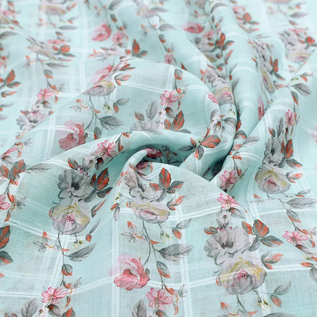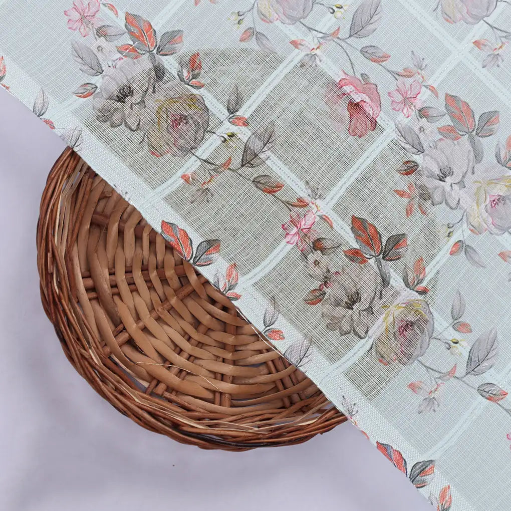 Indulge in the vibrant beauty of our Decorative Flower Velly, crafted from premium linen fabric. Its exquisite digital print boasts an array of captivating floral and decorative motifs in a symphony of red, gray, pink, and yellow. Elevate your home dacor with this versatile fabric, perfect for curtains, tablecloths, and upholstery. Trust FAB VOGUE Studio to deliver exceptional quality and style.