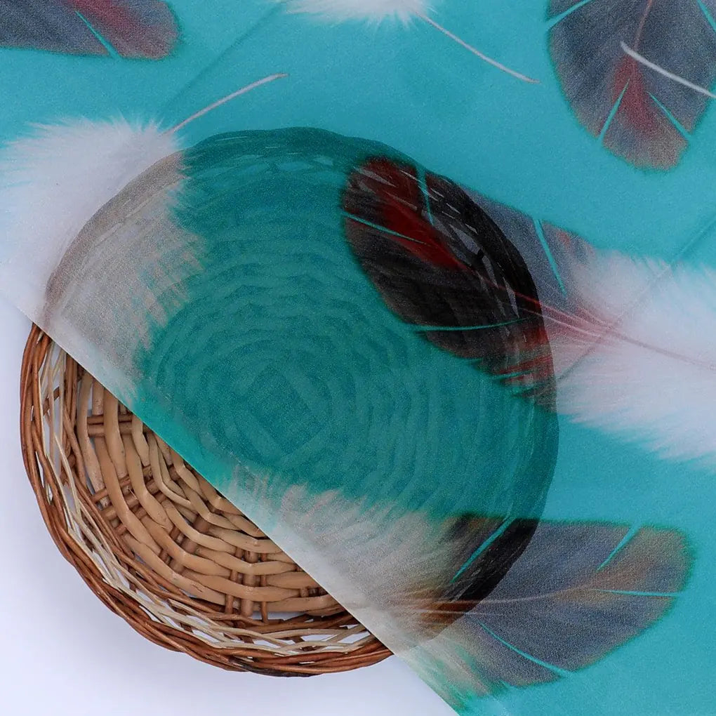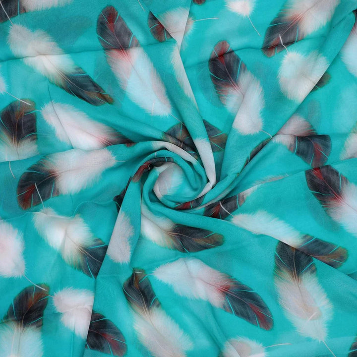 Winter Cool Ice Temple Colour Feather Digital Printed Fabric - Pure Georgette
