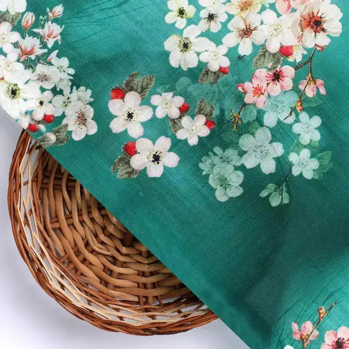 Beautiful Green Floral Digital Printed Kora Silk Fabric