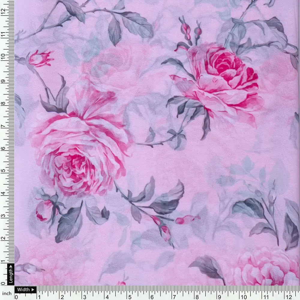 Add a touch of elegance to your wardrobe with this classy and trendy digital printed georgette fabric. The beautiful floral design in pink color is sure to make you stand out from the crowd. This lightweight and airy fabric is perfect for creating flowy dresses, skirts, and tops. Be the center of attention at any event with this gorgeous fabric from FAB VOGUE Studio.