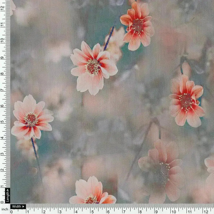 Dusty Flower Digital Printed Kora Silk Fabric
