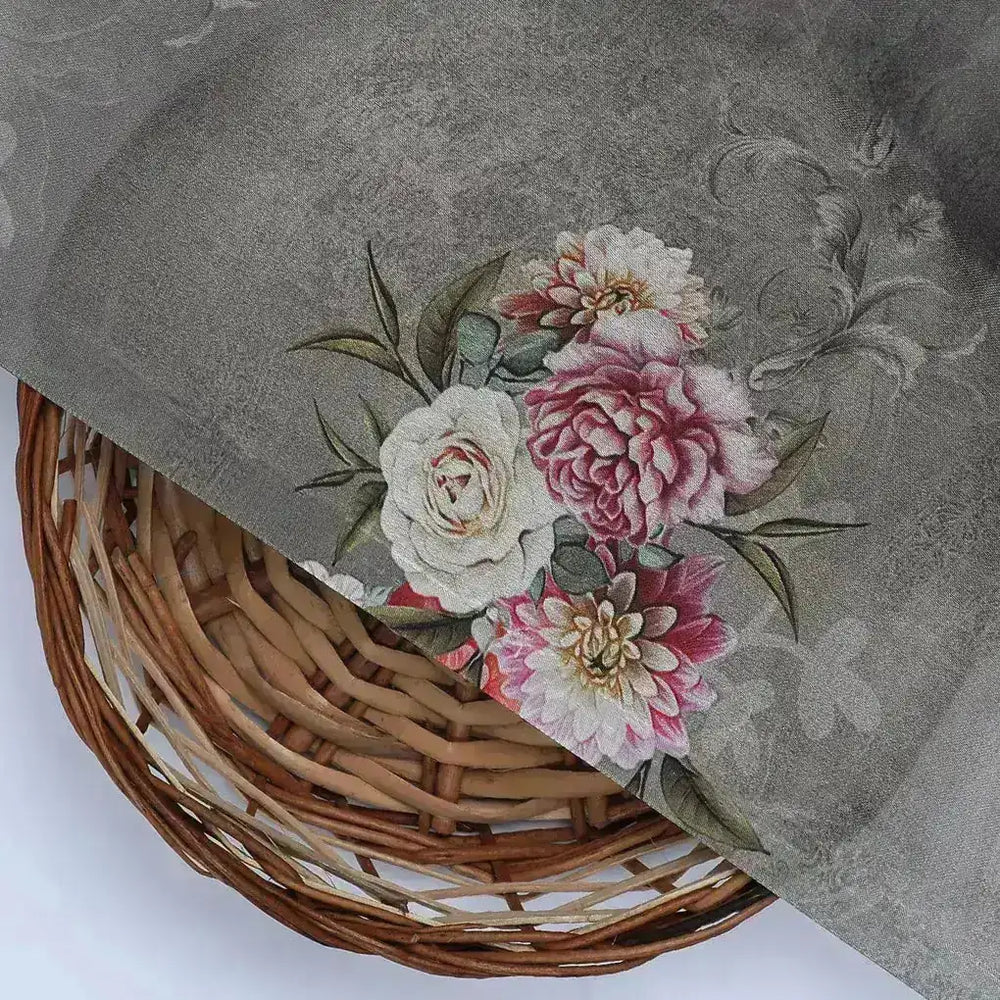 Gorgeous gray floral digital printed fabric by FAB VOGUE Studio