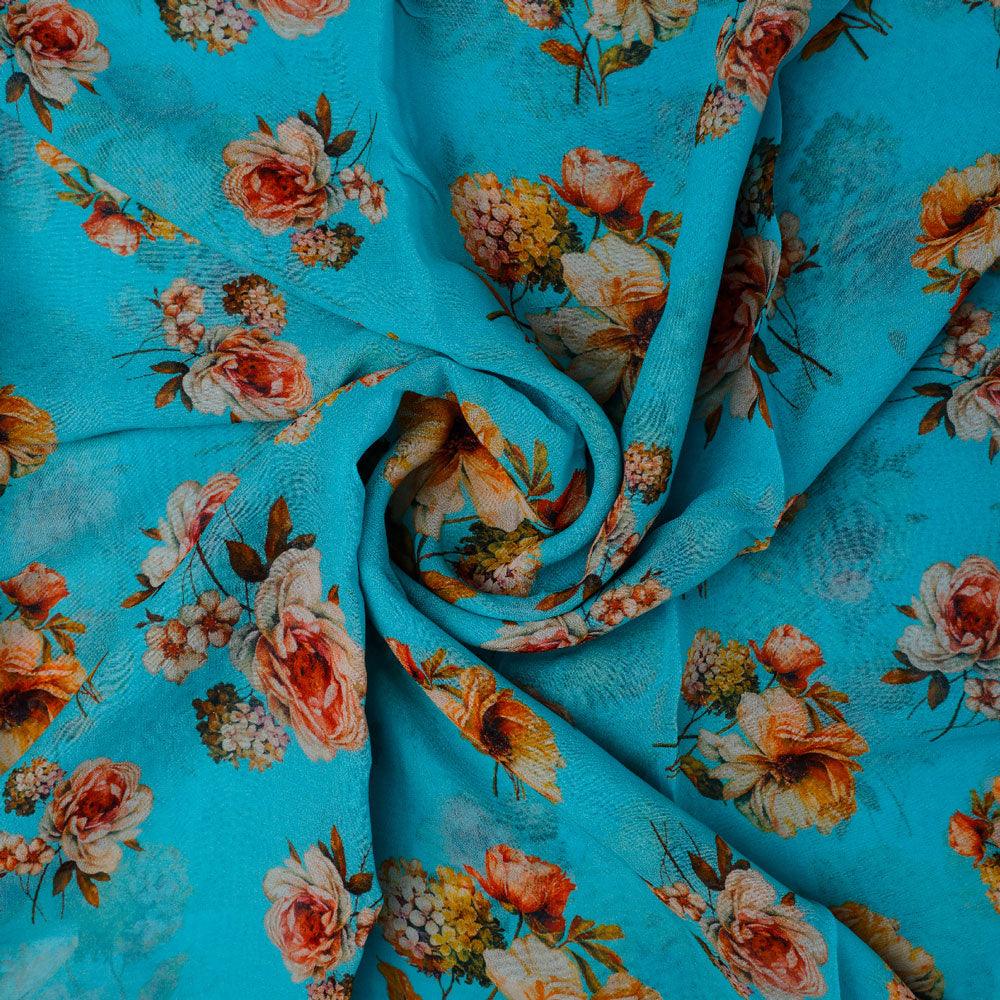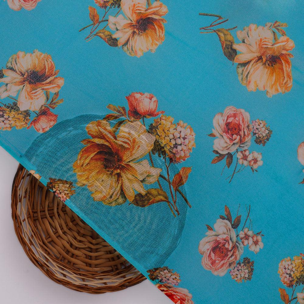 SaleBlue Floral Chanderi Fabric Set 5 Meters