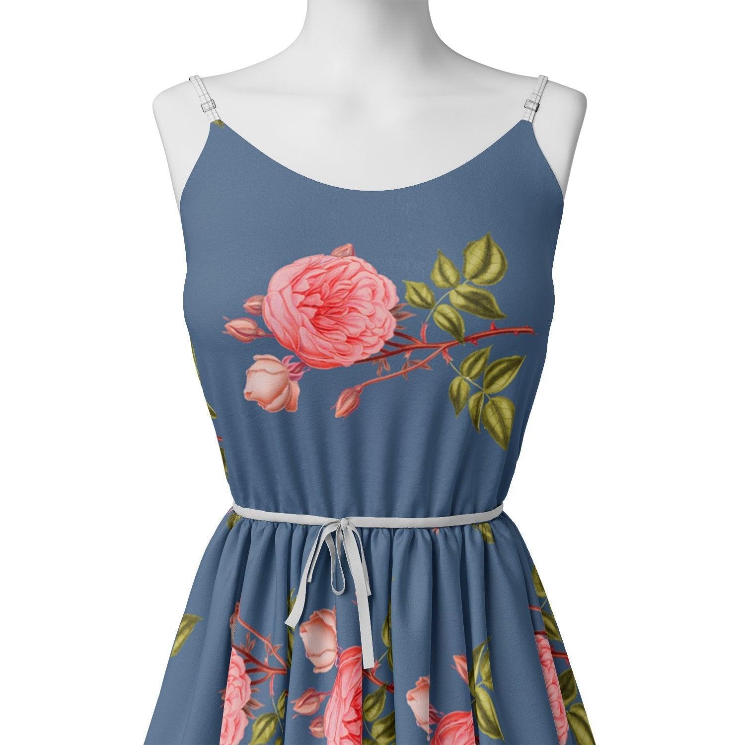 Red Rose Laying Over Blue Base Digital Printed Fabric