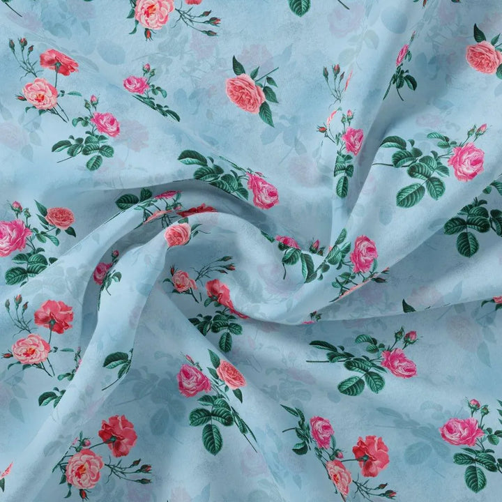 Are you looking for a unique and stylish fabric to add to your wardrobe? Look no further than the Aspen Green Leaf With Pink Rose Japan Satin Unstitched Printed Fabric from FAB VOGUE Studio. Crafted from quality Polyester fabric, this digital printed fabric has a beautiful floral pattern in a stunning sky color. With its soft and lightweight construction, this fabric is sure to be an ideal choice for your wardrobe. Whether you’re creating a dress, top, or skirt, this fabric is sure to add a touch of sophistication to your look. Get ready to make a statement with this one-of-a-kind fabric from FAB VOGUE Studio.