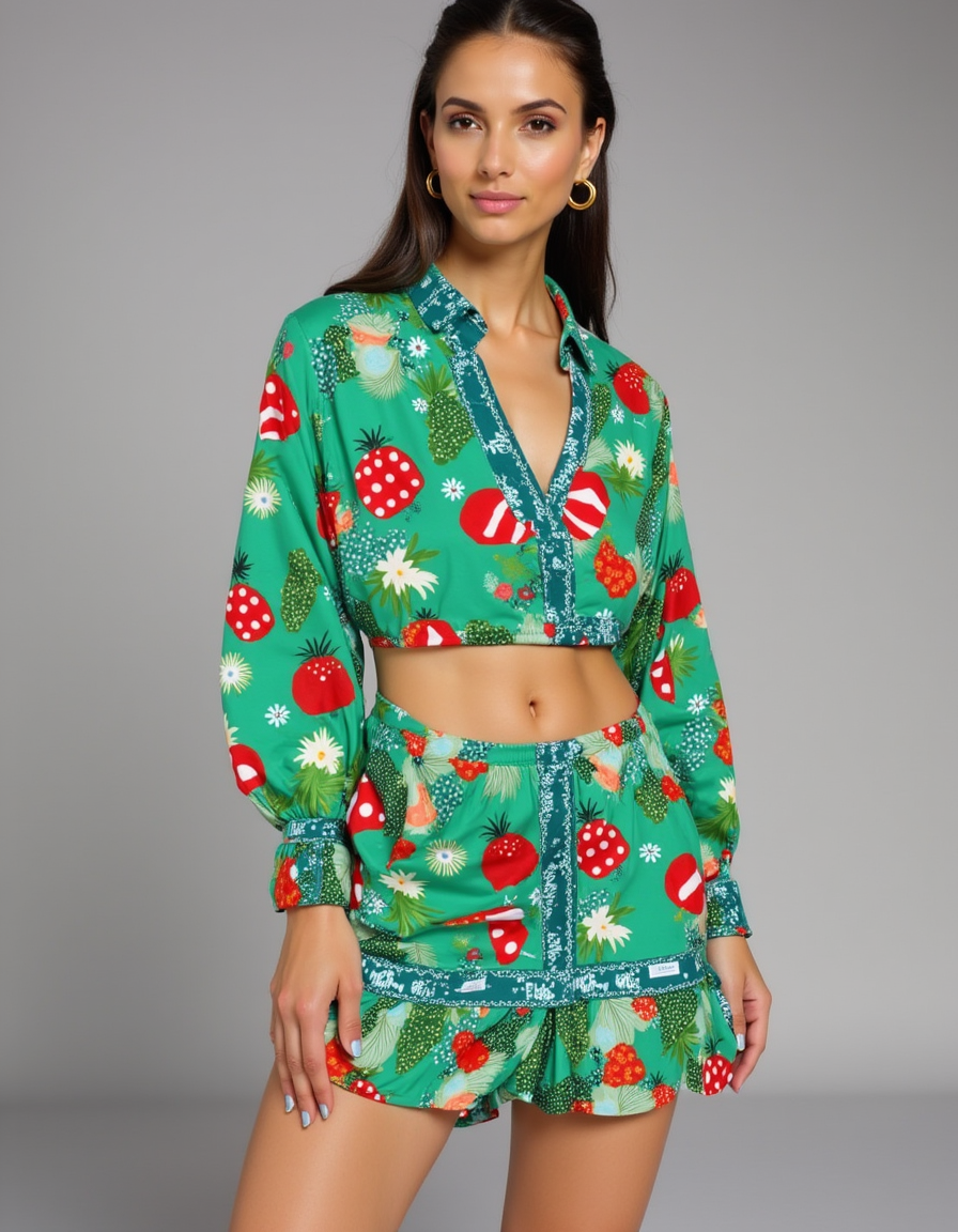 Elevate your Christmas decor with our exquisite digital printed fabric, crafted from luxurious Japan Satin. This stunning fabric features an enchanting Christmas-themed design in vibrant shades of green and red, sure to add a touch of festive cheer to any space. Created by the renowned brand FAB VOGUE Studio, this high-quality fabric is perfect for creating curtains, tablecloths, cushions, and other home decor items that will make your Christmas celebration truly unforgettable. Don't miss out on this opportunity to add a touch of elegance and holiday spirit to your home.