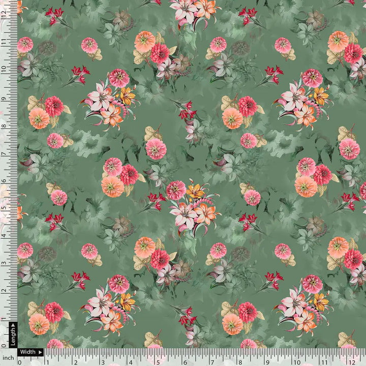 Lovely Chrysanthemum With Multi Flower Printed Fabric - Kora Silk