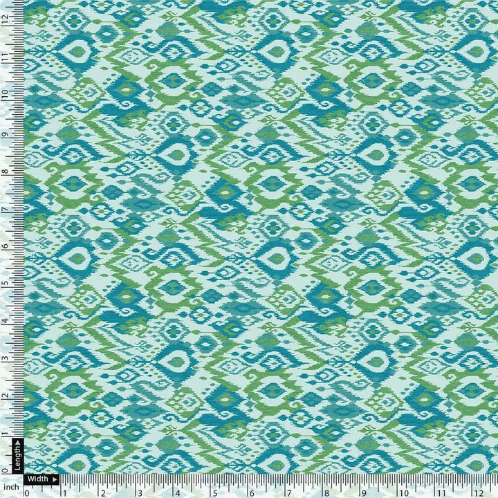 Morden Ikat Blurry Skyblue Digital Printed Fabric - Kora Silk