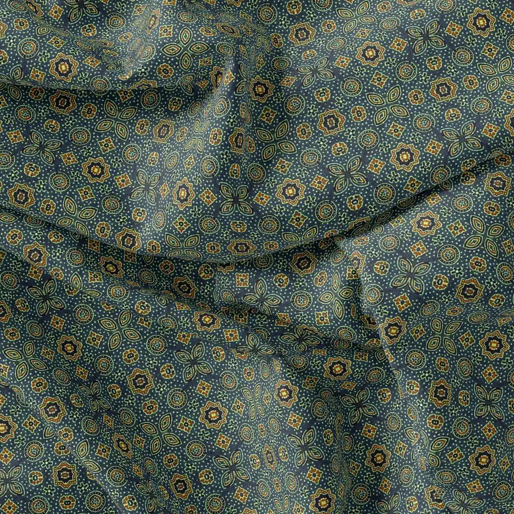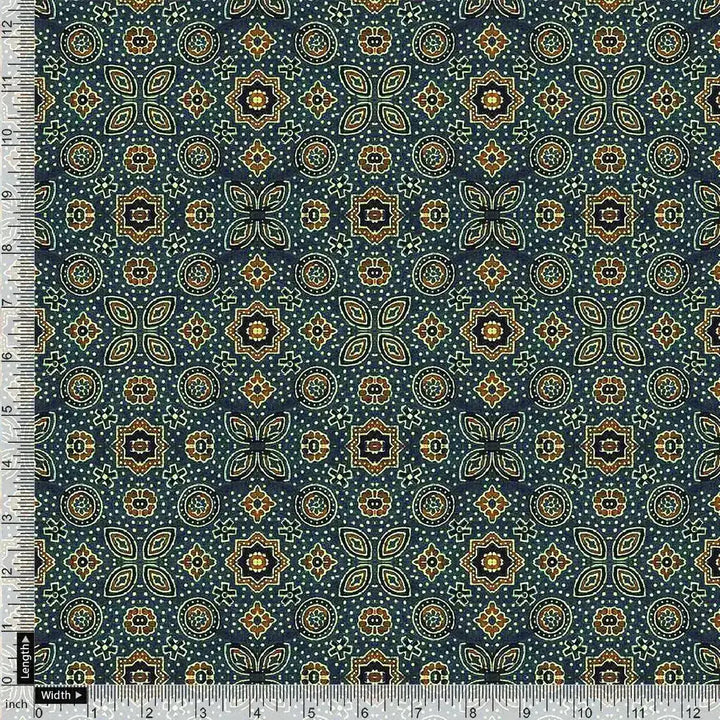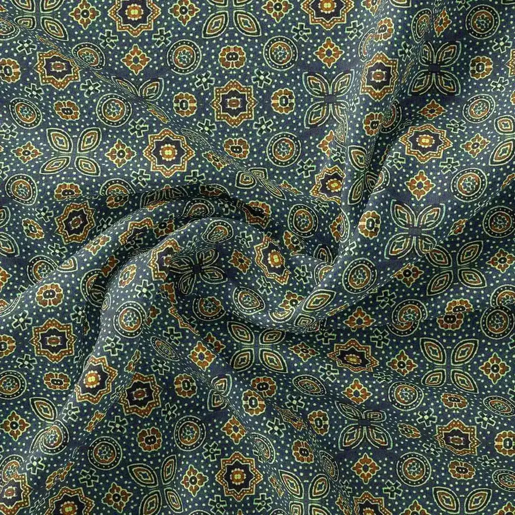 Stylized Medallion Motif Digital Printed Fabric - Kora Silk