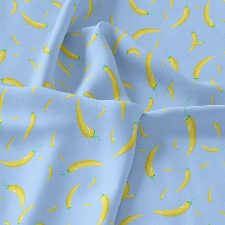 Yellow Mirchi Allover Digital Printed Fabric - Kora Silk