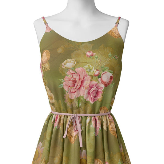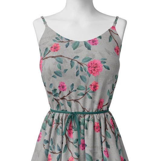 Ditsy Pink Rose With Green Leaves Digital Printed Fabric - Kora Silk
