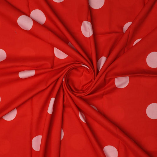 Huge Red Polka Dot Digital Printed Fabric - Kora Silk