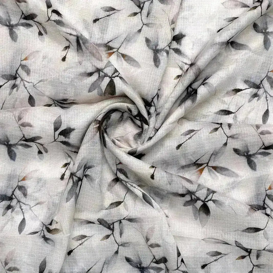 FAB VOGUE Studio - Kota Doria Digital Printed Polyester Fabric - White with Blue Leaves