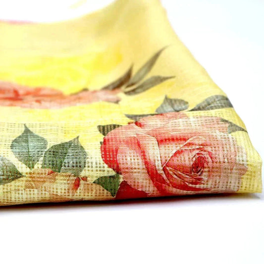 FAB VOGUE Studio Digital Printed Kota Doria Fabric - Yellow Floral Print