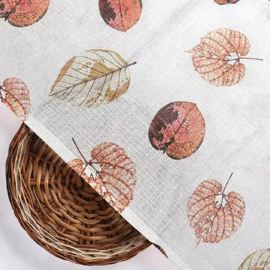 Autumnal Tropical Leaves Printed Kota Doria Fabric